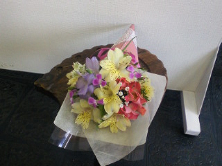 遅くなっちゃいました…すみません 3月から営業時間が少し変わりました 日・祝日の閉店時間が17:00になりました どうぞよろしくお願いします そして4月から定休日も少し変わります 月曜日と火曜日はアトリエをクローズいたします 専門学校の授業が始まることと ご注文品の制作時間の確保の為 そして2009年度までは 学校の授業にあわせて変則になることが多く お客様にご迷惑をかけてしまっていたという反省から このように決めました 生花を扱っているのに毎週2連休するなんて… 私にとってそれは考えられなかったことで ものすごい葛藤がある中の決断なのですが とにかくしばらくはこのかたちでやっていこうと思います どうぞよろしくお願いします ちょっと前になりますが1月のレッスンのレッスン生さんの作品です 美しく華やかに仕上がりました |