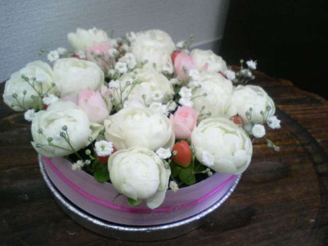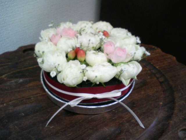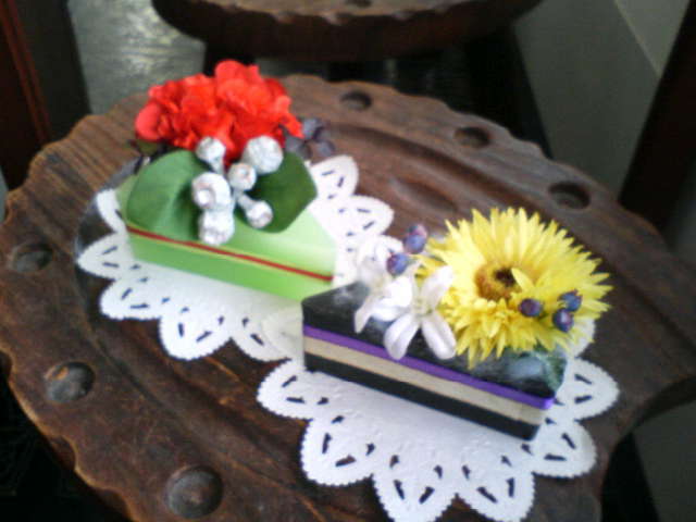 シルクフラワーでケーキ(カット)を作りました