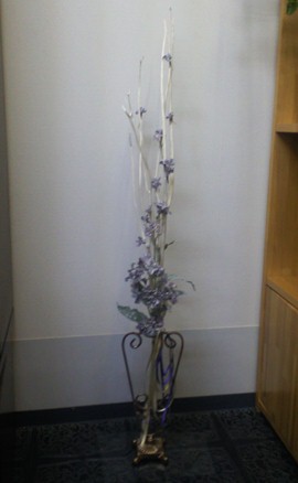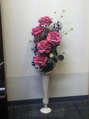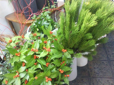 新築のお宅のテラコッタの床の上に置くアレンジです